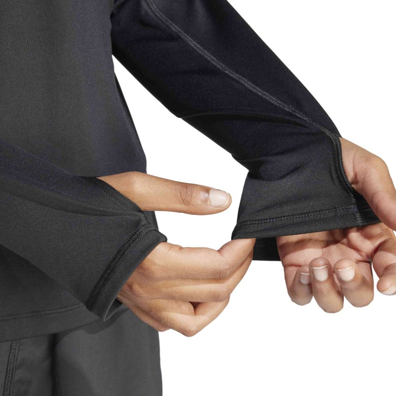 Prepárate para salir a correr en la madrugada. Esta chaqueta con medio cierre frontal fue diseñada para seguirte el ritmo. El tejido AEROREADY absorbe el sudor para mantener tu cuerpo seco kilómetro tras kilómetro. Los detalles reflectivos te hacen visible al tráfico antes del amanecer y te ayudan a dominar el camino.