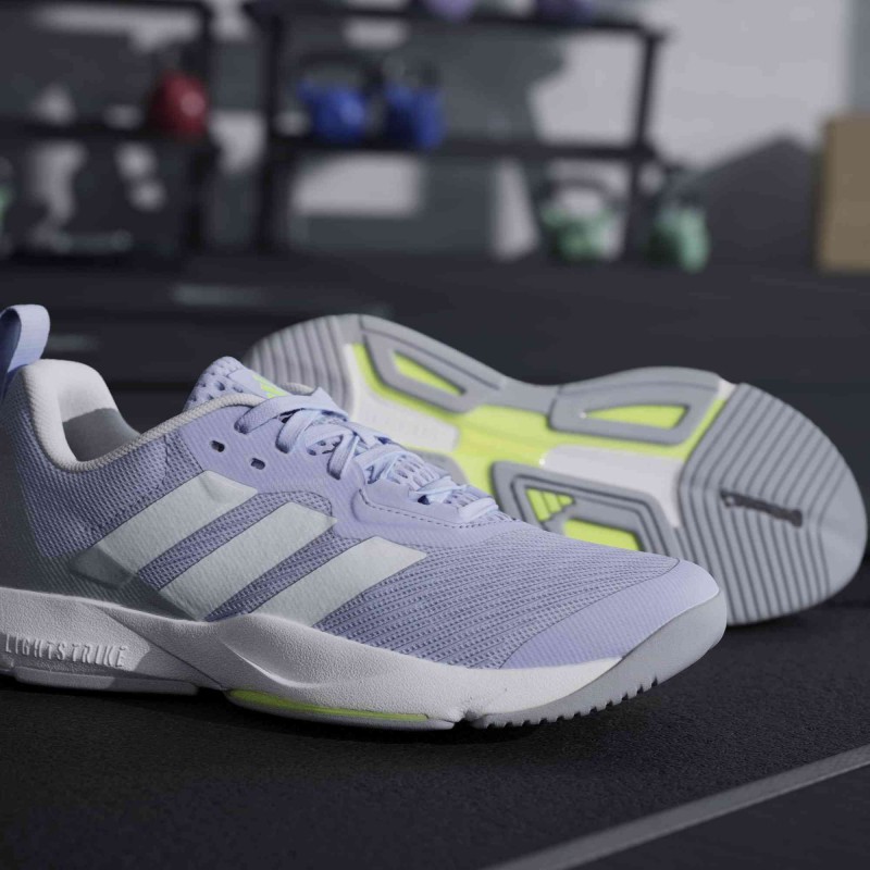 Mantente ágil en cualquier dirección con este calzado para training adidas. El exterior de malla transpirable está reforzado para que puedas ir por todo durante las escaladas, las estocadas, los saltos y los dobles saltos. La amortiguación Lightstrike de la mediasuela es super ligera y sensible para lograr movimientos rápidos. Un sistema de amarre ajustable te permite personalizar el cierre.